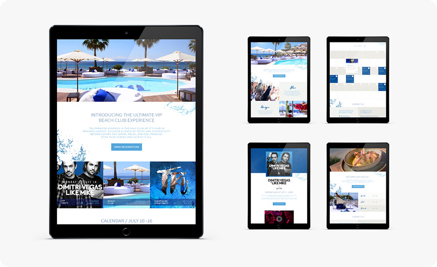 TRU Paradise Mykonos needed creative thought and design from the rocks up. The beach club and digital support were alive, raw, and pushed the senses. As 'Beach Design Officer,' we got the club off the ground in true blue style.